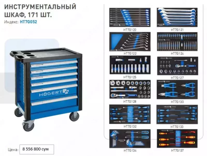 Специалисты компании Хёгерт тщательно проанализировали частоту использования того или иного инструмента. В результате чего он был скомпонован по однотипным группам для удобного использования в сервисах. Количество отделений также просчитано и исключает приобретение ненужного или редко используемого. Так диэлектрический инструмент никогда не окажется вместе со слесарным, а наборы головок сформированы по размерам.
