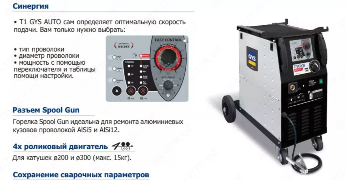 TUS.UZ предлагает вам только надежную продукцию, которая также представлена брендом GYS из Франции. Инверторные аппараты собраны так, чтобы они могли работать с бензиновыми и дизельными генераторами. Они демонстрируют высокие эксплуатационные возможности в условиях перебоев с напряжением.